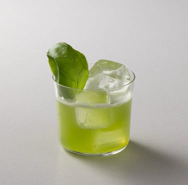 Tenere al fresco, versare in un rock glass con ghiaccio, guarnire con una foglia di basilico